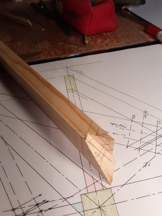 Puis rembarrer les repos à l’intérieur de l’engueulement (comme pour un arêtier aplomb) ceux ci sont d’équerre.