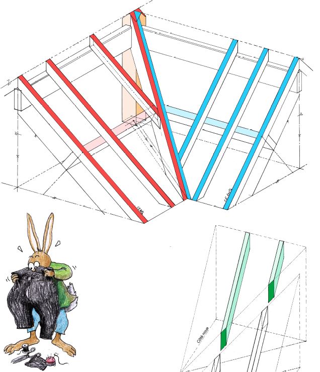 Pavillon rectangle, sablières biaises p. 62 à 63.